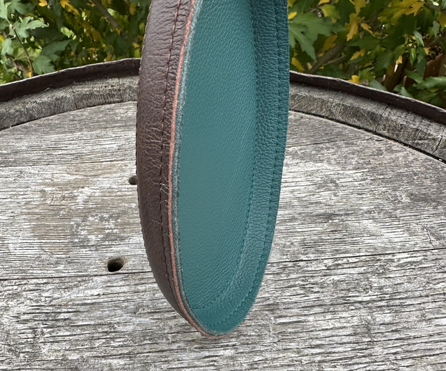 Made from two complimentary coloured leathers.